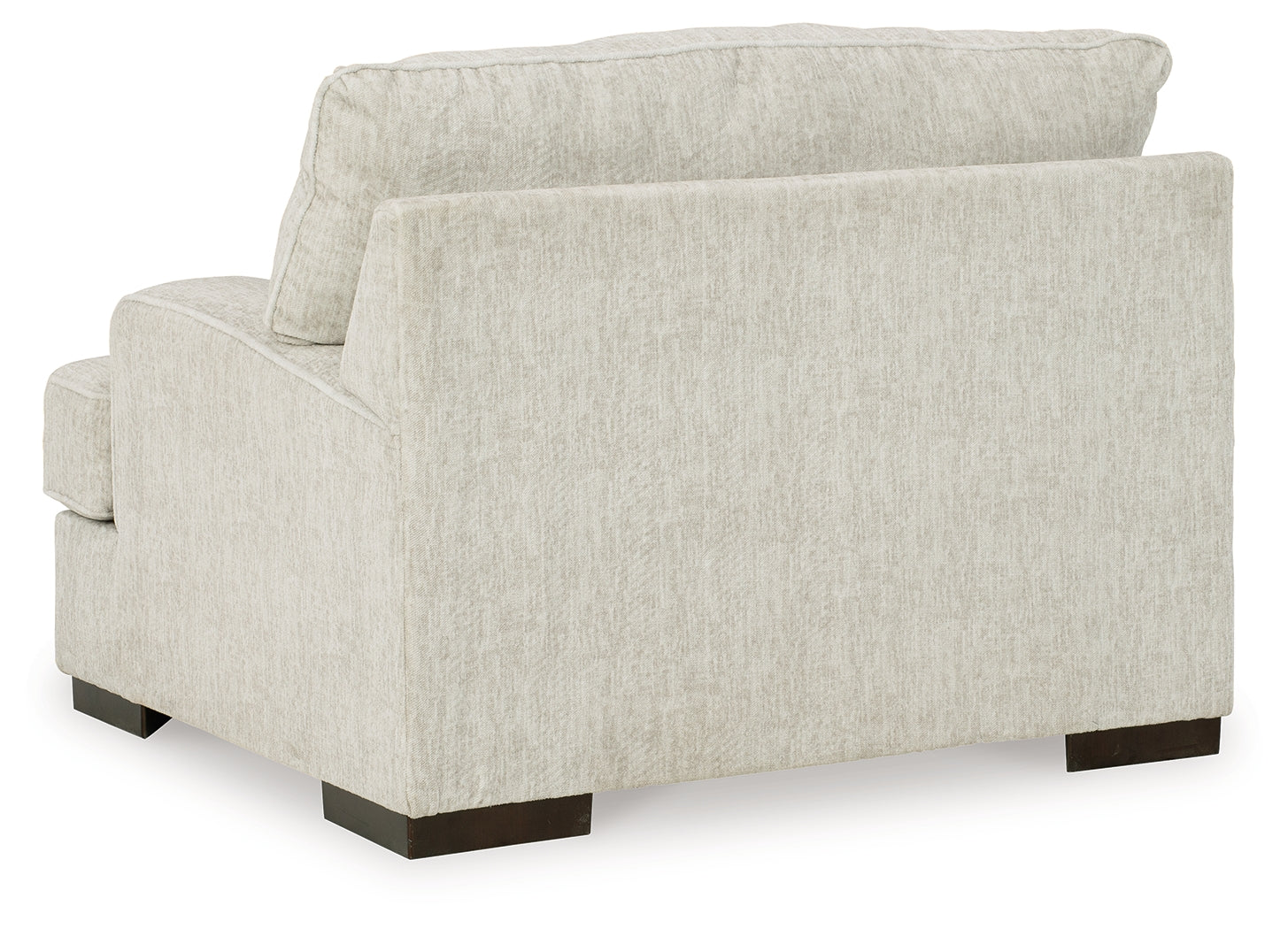 Decidedly modern with a sense of relaxed ease, the Alesandra oversized chair looks at home in so many different places and spaces. Providing a highly distinctive look: substantial track arms with curved cornering, wrapped t-cushioning and low-to-the-floor block feet in a warm wood-tone finish. Sporting a subtle chevron texture, the parchment-tone upholstery takes neutral to new heights.