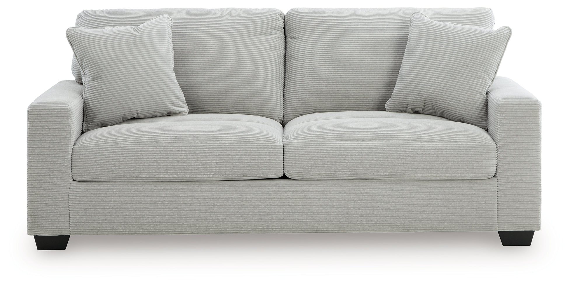 • The crisp neutral hue and striking design details of the Amesley sofa create a living room that expertly reflects your modern taste. For irresistibly cool textural appeal, the ultra-soft fabric is enhanced by a small-scale corded look. With a clean-lined silhouette complete with track arms, this sofa allows you to take a trend-right approach to everyday living.