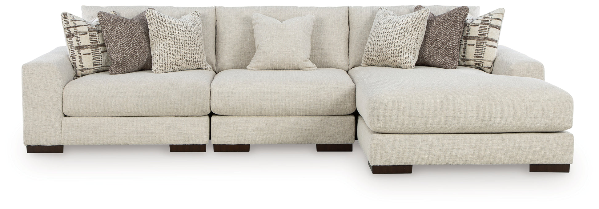 The simple, streamlined style of the Barrelton sectional with chaise is the perfect choice for your casual contemporary home. Oversized cushions and neutral-hued chenille fabric take a relaxed approach to modern flair, creating a fashionable and comfortable retreat. Whether this sectional is used for cozy movie nights or chatting over charcuterie at dinner parties, it keeps its chic character. Hop in, there's always room for one more.